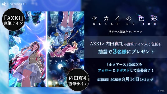 『セカイの色彩』リリースを記念して、AZKiと内田真礼の直筆サイン入り特製色紙を抽選で3名様に当たるフォロー&リポストキャンペーンを開催します!