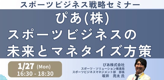JPI(日本計画研究所)は、ぴあ株式会社 スポーツ・ソリューション推進局 スポーツビジネスマネジメント部 部長 坂井 亮太 氏を招聘し、スポーツビジネスの未来とマネタイズ方策について詳説いただくセミナーを開催します。