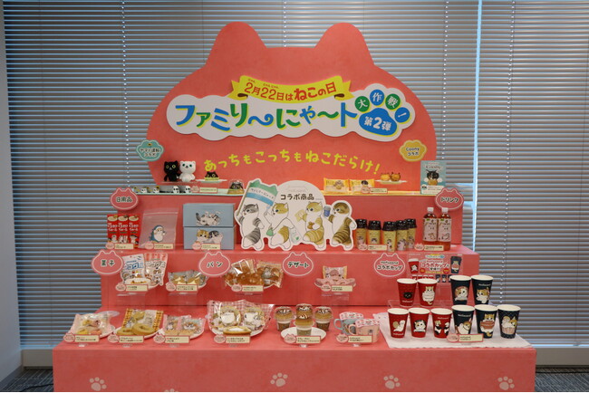 株式会社ファミリーマート(本社:東京都港区、代表取締役社長:細見研介)は、継続して取り組んでいる5つのキーワードの1つである「『あなた』のうれしい」の一環として、2月22日の“ねこの日”に合わせて、ねこモチーフのスイーツ・パン・チルド飲料や日用品などのオリジナル商品19種を発売する「ファミリ~にゃ~ト大作戦!」を、2024年2月13日(火)から全国のファミリーマート約16,300店にて開催しております(※1)。