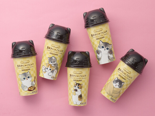 【内容】香ばしいきなことコクのある黒蜜にミルクを合わせたデザート飲料です。オリジナルねこ耳キャップ付き。パッケージは「mofusand」とコラボレーションしたデザインで、全5種類です。※数量限定