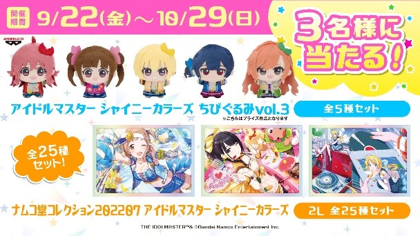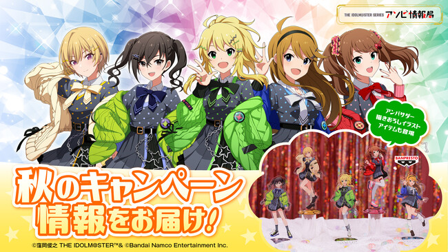 株式会社バンダイナムコアミューズメントは、アニメ『アイドルマスター シャイニーカラーズ』やアンバサダーに就任した『アイドルマスター』シリーズの5名のアイドルたちの限定アミューズメント景品や「太鼓の達人」コラボ、スタンプラリー企画などの各種キャンペーンを今秋に展開します。