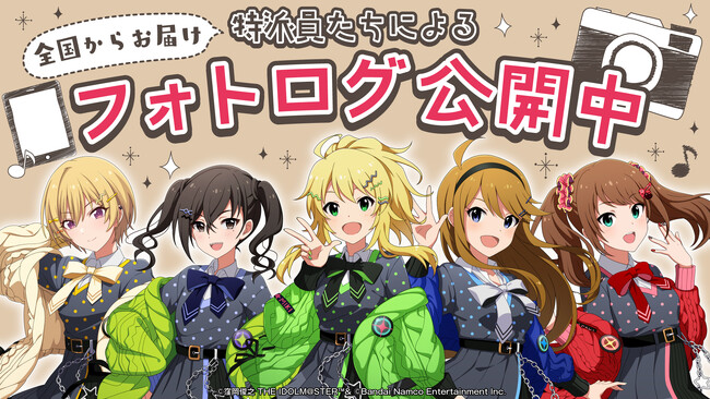 現在、『アイドルマスターシリーズ ナムコのお店でスタンプラリー』と『アイドルマスター』シリーズのグッズが当たるキャンペーンを実施中です。そのほか、特派員として活動するアイドルがお仕事の合間に作ってくれた「フォトログ」「アソビ情報局 描きおろしイラストラインナップ」の公開を予定しています。