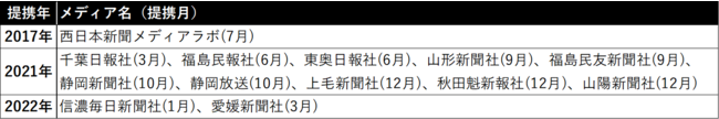 <PR TIMESによる地域情報の流通を目的とする提携先メディア一覧>