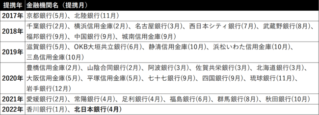 <PR TIMESによる地域情報の流通を目的とする提携先金融機関一覧>