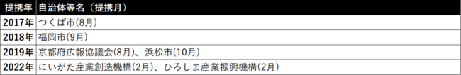 <PR TIMESによる地域情報の流通を目的とする提携先自治体等一覧>