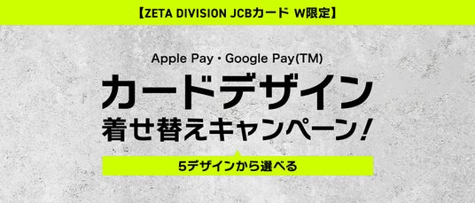 株式会社ジェーシービー(本社:東京都港区、代表取締役兼執行役員社長:二重 孝好、以下:JCB)は、2025年5月7日(水)から5月31日(土)の期間中にZETA DIVISION JCB カード Wでキャンペーン参加登録を行い、かつApple PayまたはGoogle Pay で1回以上利用した方を対象に、Apple Pay・Google Pay のカードデザインを限定デザインに変更いたします。(全5種)