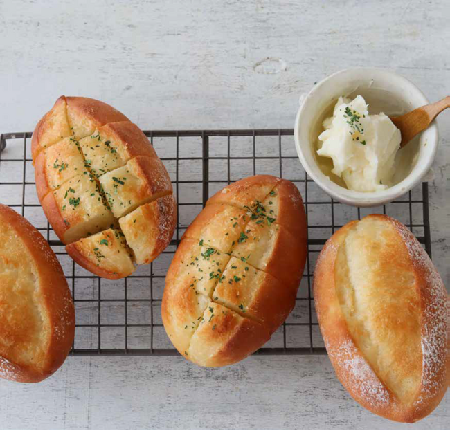 「食べきりパン」は、たった120gの粉だから作りやすく、お家で気軽に焼き立てパンが楽しめます。