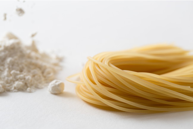 福岡県がラーメン用に開発した特別な小麦と、デュラム小麦を5:5の割合で配合した生パスタ。モッチリとした食感にほどよいコシが残る、新食感のパスタです。