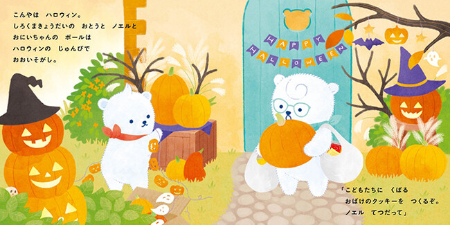 大ヒットシリーズ第4弾、できました。今回は、ポールとノエルがハロウィンを思いきり楽しみます! クッキーづくりやかわいい仮装など、真似してみたいアイディアもいっぱい。しろくまきょうだいと一緒に、素敵なハロウィンを過ごしましょう♪