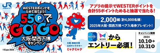 10月1日よりWESTERアプリおよびWESPOアプリにて、抽選で大阪・関西万博ペア入場券またはWESTER(基本)1,000ポイントが当たるキャンペーンを実施いたします。