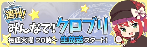 初回は2018年6月5日(火)20:00からクロブリ公式YouTubeチャンネルと公式Twitterから配信いたします。是非ご覧ください。