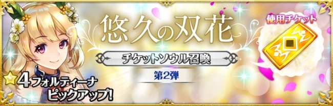 イベント「悠久の双花」でゲットした召喚チケットは「悠久の双花チケットソウル召喚」にて一定確率で通常版★4「イブリーナ」と★4「フォルティーナ」を入手できます。期間限定イベント「悠久の双花」に参加してみてください。