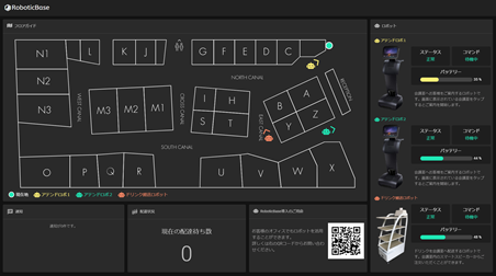 各サービスロボットの稼働状況をモニタリングできます。ロボット管理者のための機能としてはもちろん、来社されたお客様へ先進的な取組みをしていることのアピールにもつながります。