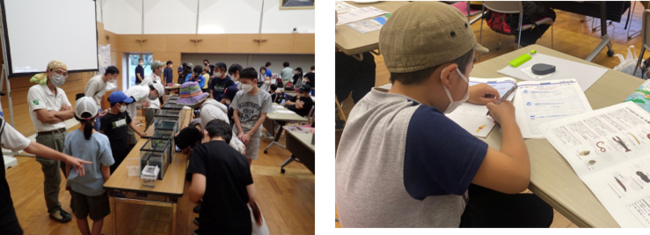 天竜川での体験学習後は「天竜川の生物」と「ごみ問題」について勉強会を実施。生物が暮らしやすい川とはどんな環境なのか、川のごみは生物や人間にどんな影響があるのかなど、親子でワークシートを使いながら考えをまとめ、これから自分たちができることを模索しました。