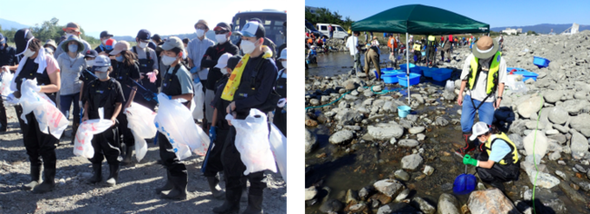 開催概要:長野県伊那市の小学生を対象に、天竜川の一部をせきとめて「かいぼり体験」をしながら海洋ごみ問題や環境問題に繋がる川ごみや生き物の体験学習