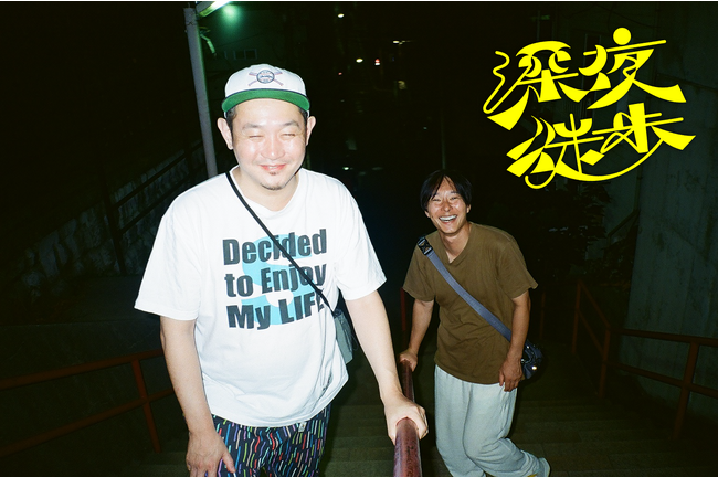 そして、第2弾の出演者は、マシンガンズの2人。所属する太田プロゆかりの四谷三丁目付近を、お酒片手に、だらだらと歩きながら思い出を語ります。今回は、道中2人が昔よく行った町中華に入って食べて飲んだり、上の写真にあるような「君の名は。」の聖地として有名な坂をめぐったり、ゆったりとした2人の「深夜徒歩」が楽しめます。