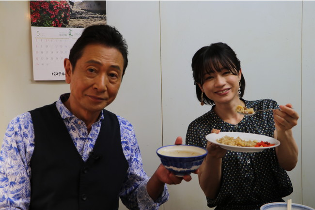 旅のお相手は斉藤雪乃。二人はまず城下町の商店街でご当地グルメを「はしご」します。地元で人気の中華料理店「英洋軒」が営む立ち飲み酒場からスタート。名物の本格的な手作り餃子と、国産の豚バラを3時間かけてじっくり仕込んだ焼き豚を味わいます。