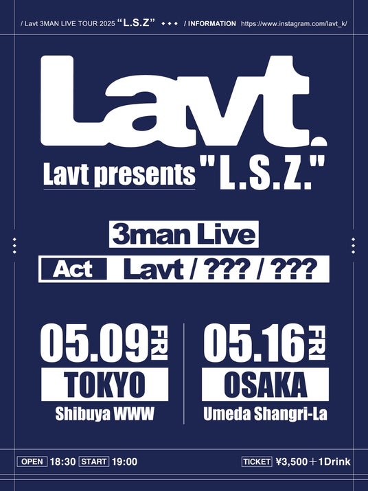 昨年、ミニアルバム「ZERO」をリリースし、Spotifyが2025年に躍進を期待する次世代アーティスト「RADAR: Early Noise 2025」にも選出された話題のシンガーソングライター、Lavt (ラウト)が、初の自主企画となる「Lavt presents "L.S.Z."」の開催することを発表。本日、1月9日からチケット最速先行販売がスタートした。
