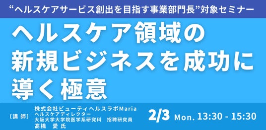 JPI(日本計画研究所)は、株式会社ビューティヘルスラボMaria ヘルスケアディレクター 高橋 愛 氏を招聘し、ヘルスケア領域の新規ビジネスを成功に導く極意について詳説いただくセミナーを開催します。