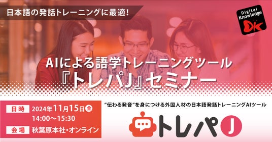 デジタル・ナレッジは2016年にリリースし、2021年度には日本e-Learning大賞 AI・人工知能特別部門賞を受賞した「先生と生徒のための英語4技能対応授業実現AIツール【トレパ】」をベースに日本語版の【トレパJ】を提供しております。