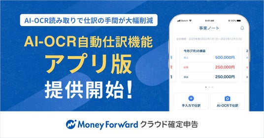 また、今回の確定申告からWEB版・アプリ版の両方で「AI-OCR自動仕訳機能」を利用できます。アプリ版ではレシートや領収書をスマートフォンのカメラで撮影、アップロードすることで、自動で内容を読み取り仕訳を作成できます。