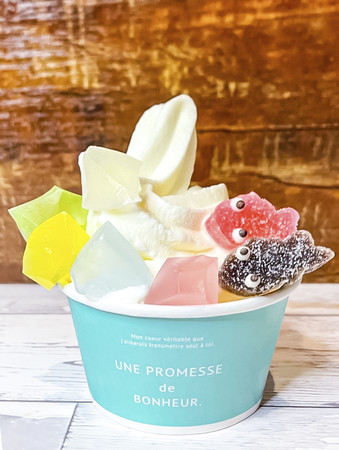「みどり製菓」琥珀糖ソフトクリーム(1人前)550円