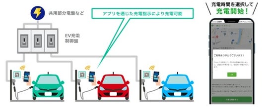 本物件には充電設備を4基設置しており、EVユーザーは、専用のアプリを通じて簡単な操作でEVへの充電指示や料金の支払いが可能となり、利便性の高い充電環境を実現します。