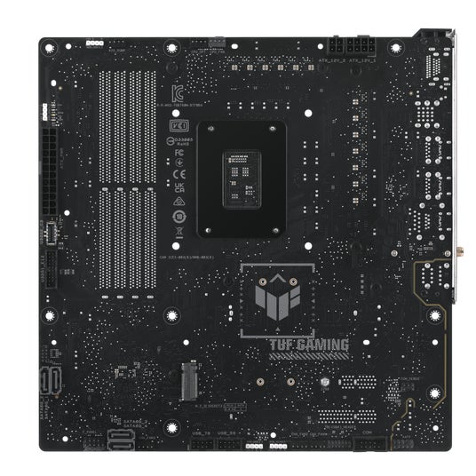 TUF GAMING B760M-BTF WIFIはMicro-ATXサイズで小型で勝つケーブル配線を背面に隠せ、マザーボー表面のスッキリとしたケーブルマネジメントとミニマルな外観を実現しています。