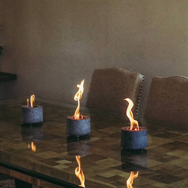 屋内や屋外で使用しやすいコンパクトなサイズなので持ち運びに便利です。無臭、無煙でご使用いただける為、自宅のテーブルに置いてインテリアとしてもお楽しみいただけます。素材は耐熱性の高い非吸収性セメントなので、安心してご自宅でご使用いただけます。