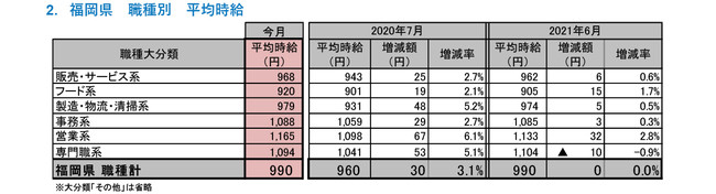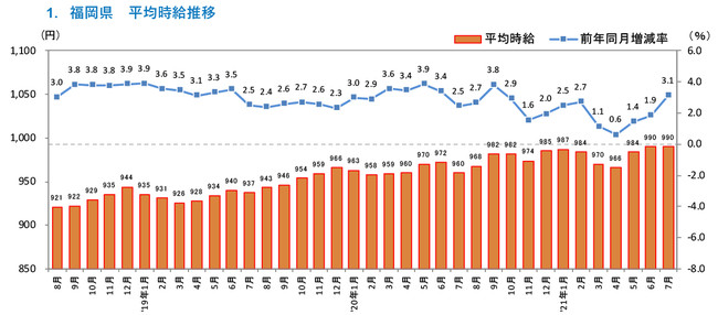 ■福岡県の平均時給は990円(前年同月960円、前月990円)