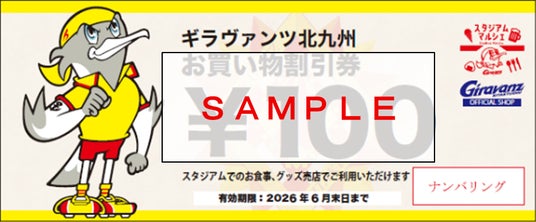 明治安田J2・J3百年構想リーグ期間中の対象試合において、スタンプラリーにご参加いただいた方々の中で各試合先着1,000名さまに「試合会場で使えるお買い物割引券(100円分)」をプレゼントします。