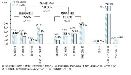 企業の海外進出率は18.3%、コロナ禍から6ポイント低下