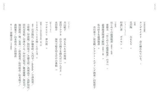 表紙はカンザキイオリさんの「ことば」と共にお届け&最新小説冒頭を特別掲載。北沢陶さん、杉森仁香さんの小説、「澁澤龍彦」特集、犬山紙子さん、富田ララフネさん、永田敬介さん、マツオヒロミさんも登場!