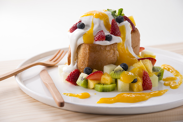 ランチビュッフェ、ヒルトンブランチ限定の人気メニュー「テラス特製フレンチトースト」は卵液にじっくり漬け込んだバゲットを大きな鉄板で外はカリカリ、中はプディングのようにトロトロに仕上げています。シェフが1枚ずつ香ばしく焼いたフレンチトーストにはお好みのトッピングやソースを添えてお召し上がりください。トッピングの種類はホイップクリーム、メープル風シロップ、はちみつ、シナモンパウダー、アイスクリーム、フルーツカクテルなど。お気に入りのオリジナルフレンチトーストを完成させてみてください。10月はハロウィンにちなみ、かぼちゃのアングレーズソースもご用意しています。