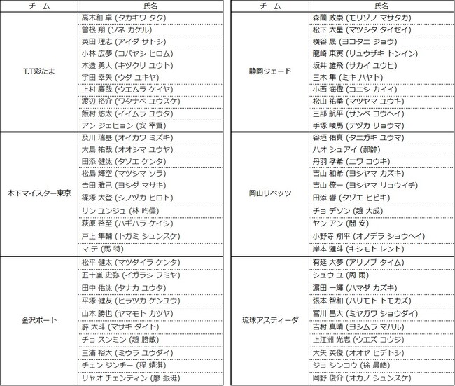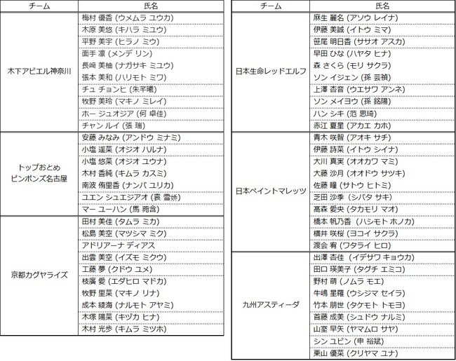 Tリーグでは、以下の通り、選手登録抹消、及び、選手登録が決まりましたのでお知らせいたします。