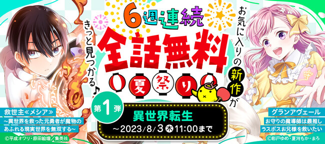 ▼「6週連続☆ 全話無料夏祭り! お気に入りの新作がきっと見つかる♪」第1弾キャンペーンページ