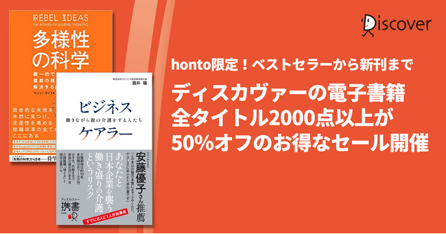 10/9から10/15までの1週間、hontoにて、配信されているディスカヴァーの電子書籍全アイテム2000点以上が50%オフになるお得なキャンペーンを開催します。