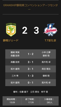 3-2でT.T彩たまが静岡ジェードに勝利しました
