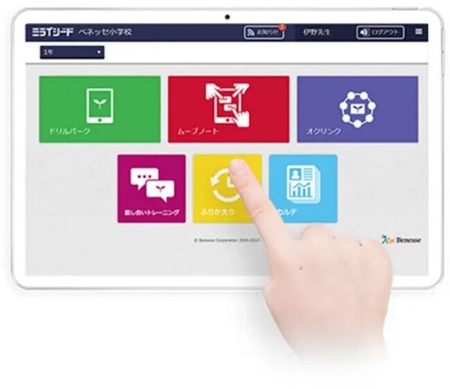 ベネッセコーポレーションの「ミライシード」は、協働学習・一斉学習・個別学習それぞれの学習場面に対応した、小中学校向けタブレット学習用オールインワンソフトです。