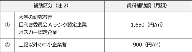 (1ヶ月当たりの補助金額・上限100平方メートル)