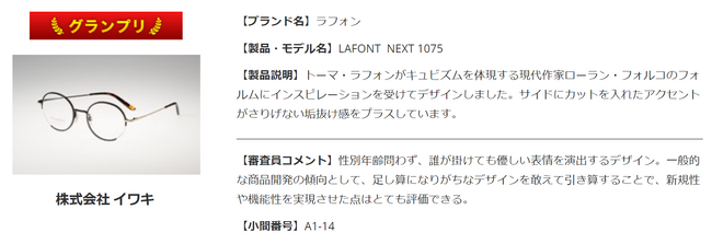 ◆デザイン部門 グランプリ受賞 株式会社 イワキ / LAFONT NEXT 1075