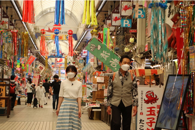 旅のお相手は斉藤雪乃。二人はまず明石の台所として市民に親しまれる「魚の棚商店街」へ。