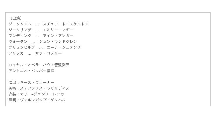 英国ロイヤル・オペラ 《ワルキューレ》 情報サイト