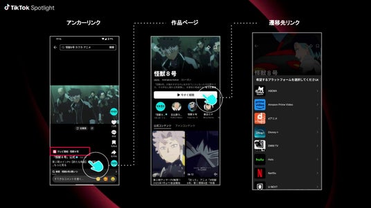 ショートムービープラットフォーム「TikTok(ティックトック)」は、映画やテレビシリーズを効果的にプロモーションできる新機能「TikTok Spotlight」を、2025年7月18日(金)より提供開始します。また、ローンチに際して、アニメ『怪獣8号』が本機能を導入する第一号作品に決定しました。本作は「TikTok Spotlight」と連動し、日本・北米・中南米・東南アジアなど複数地域でのグローバルキャンペーンも展開します。