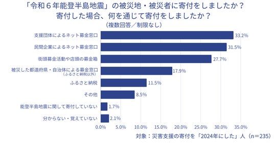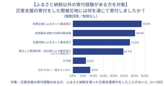 ~ 2割が能登半島地震に寄付、手法は「支援団体や民間のネット募金」が最多 ~ ~ ふるさと納税での災害支援寄付は認知5割、寄付者は「自治体選べる」「透明性」評価 ~