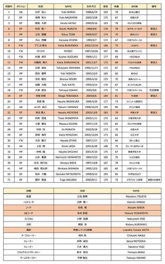 この度、ツエーゲン金沢(J3)において、明治安田J2・J3百年構想リーグを闘う監督・スタッフ・選手並びに選手背番号が決定いたしましたのでお知らせいたします。