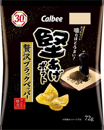 カルビー株式会社(本社:東京都千代田区、代表取締役社長: 江原 信)は、“噛むほどうまい!”堅い食感が人気のポテトチップス「堅あげポテト」の発売30周年を迎えるにあたり、4年ぶりに中身をリニューアルした『堅あげポテト ブラックペッパー』を2023年11月6日(月)から全国のコンビニエンスストア以外の店舗で発売します。それに先駆けて、ブラックペッパー感をアップした『堅あげポテト 贅沢ブラックペッパー』を2023年10月30日(月)から全国のコンビニエンスストアで期間限定発売します(2023年12月下旬終売予定)。