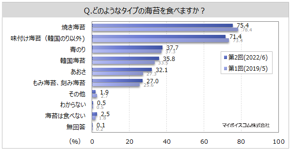 マイボイスコム株式会社(東京都千代田区、代表取締役社長:高井和久)は、2回目となる『海苔』に関するインターネット調査を2022年6月1日~5日に実施し、10,122件の回答を集めました。調査結果をお知らせします。