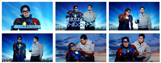 「地球の未来を守るマン ピンチ篇」では、正義の味方が弱りながらも地球の危機を危惧する中で、「東京ガスもがんばります!」と東京ガス社員が登場。洋上風力発電など再生可能エネルギーの拡大に挑戦していることを伝えると、正義の味方は一安心し、東京ガスに地球を守る役割を「頼んだよ!」とあっという間に任せて安心した様子を見せます。