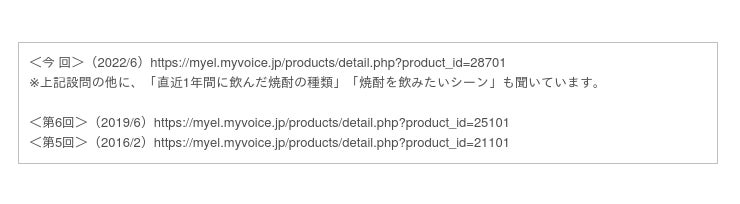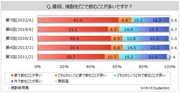 マイボイスコム株式会社(東京都千代田区、代表取締役社長:高井和久)は、7回目となる『焼酎の飲用』に関するインターネット調査を2022年6月1日~5日に実施しました。調査結果をお知らせします。